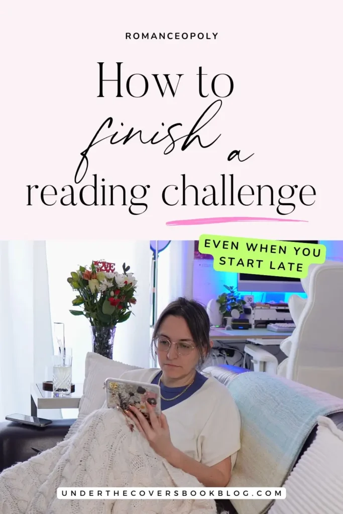 Finish a reading challenge with an easy monthly pacing formula, motivation hacks, and gamification. It’s perfect even if you start late and using Romanceopoly as an example.